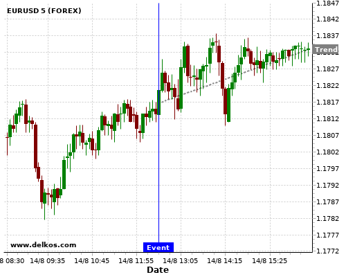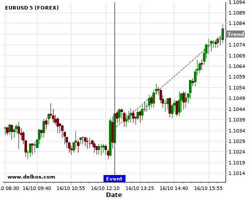这个概率是根据最近12次公布US Retail Sales MoM数据得出的, 12次中有6次真实数据小于专家预期, 这其中有5次导致EURUSD上涨。