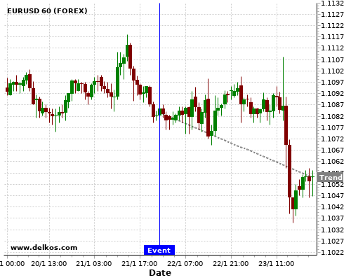 这个概率是根据最近12次公布AU Westpac Consumer Confidence Index数据得出的, 12次中有6次真实数据小于专家预期, 这其中有5次导致EURUSD下跌。