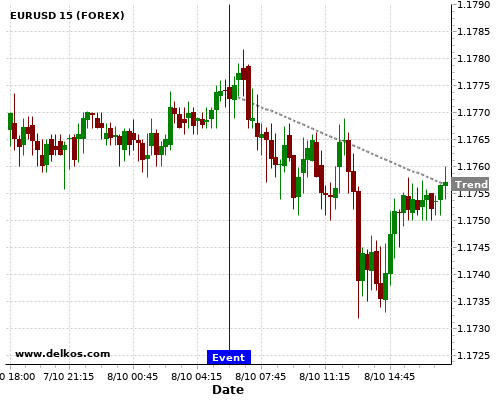 这个概率是根据最近12次公布DE Balance of Trade数据得出的, 12次中有6次真实数据小于专家预期, 这其中有5次导致EURUSD下跌。