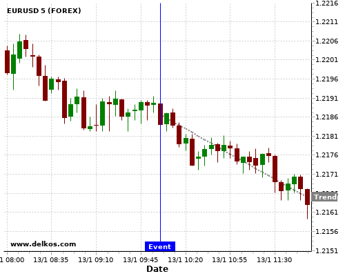 这个概率是根据最近12次公布EMU Industrial Production YoY数据得出的, 12次中有6次真实数据大于专家预期, 这其中有5次导致EURUSD下跌。