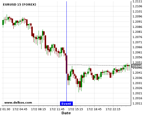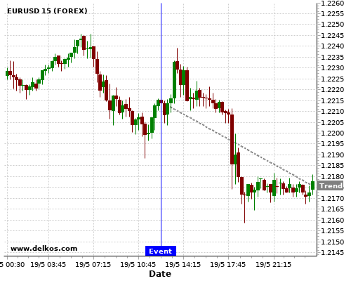 这个概率是根据最近12次公布CA Inflation Rate YoY数据得出的, 12次中有6次真实数据大于专家预期, 这其中有5次导致EURUSD下跌。