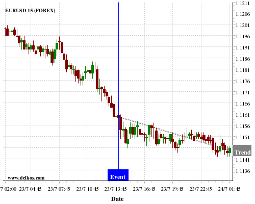 这个概率是根据最近12次公布US Existing Home Sales数据得出的, 12次中有6次真实数据小于专家预期, 这其中有5次导致EURUSD下跌。