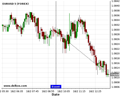 这个概率是根据最近12次公布GB Claimant Count Change数据得出的, 12次中有7次真实数据小于专家预期, 这其中有6次导致EURUSD下跌。