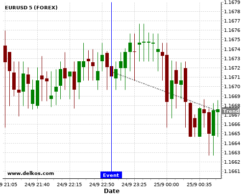 这个概率是根据最近12次公布GB Gfk Consumer Confidence数据得出的, 12次中有8次真实数据大于专家预期, 这其中有7次导致EURUSD下跌。