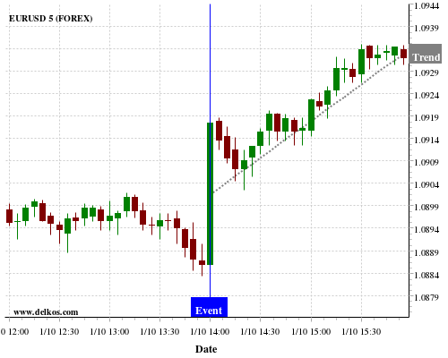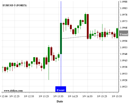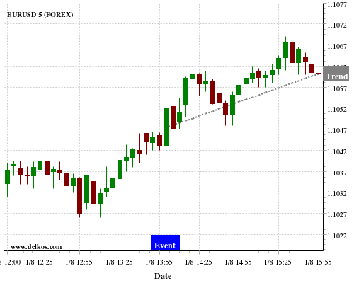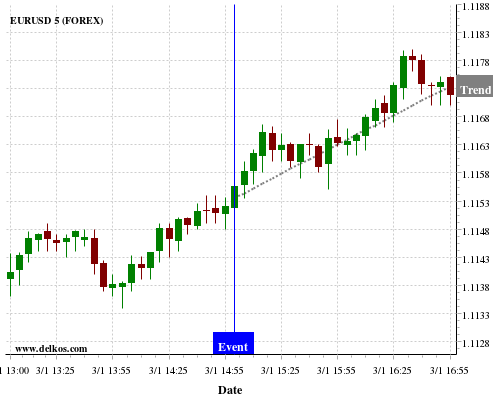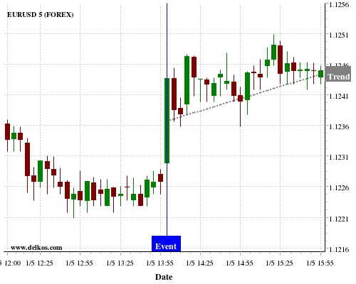 这个概率是根据最近12次公布US ISM Manufacturing PMI数据得出的, 12次中有9次真实数据小于专家预期, 这其中有8次导致EURUSD上涨。