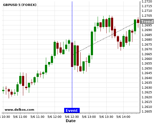 这个概率是根据最近12次公布CA Employment Change数据得出的, 12次中有7次真实数据大于专家预期, 这其中有5次导致GBPUSD上涨。