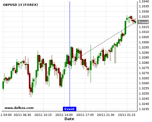 这个概率是根据最近12次公布EMU Consumer Confidence Flash数据得出的, 12次中有8次真实数据大于专家预期, 这其中有6次导致GBPUSD上涨。