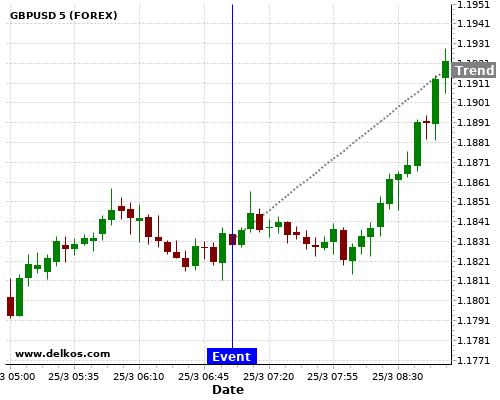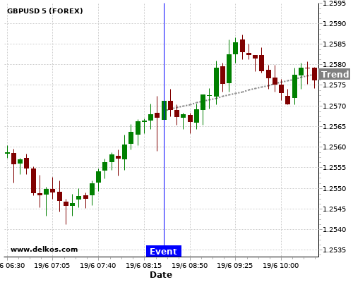 这个概率是根据最近12次公布GB Inflation Rate YoY数据得出的, 12次中有4次真实数据等于专家预期, 这其中有3次导致GBPUSD上涨。