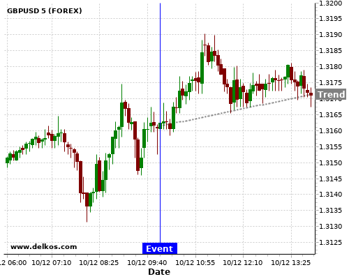 这个概率是根据最近12次公布DE ZEW Economic Sentiment Index数据得出的, 12次中有8次真实数据大于专家预期, 这其中有4次导致GBPUSD上涨。