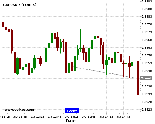 这个概率是根据最近12次公布US ADP Employment Change数据得出的, 12次中有8次真实数据小于专家预期, 这其中有6次导致GBPUSD下跌。