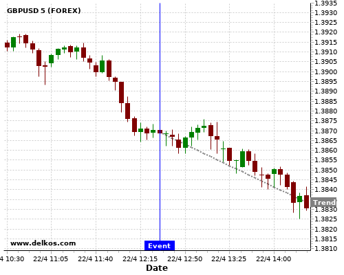 这个概率是根据最近12次公布US Continuing Jobless Claims数据得出的, 12次中有8次真实数据大于专家预期, 这其中有6次导致GBPUSD下跌。