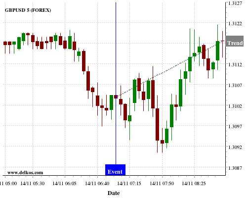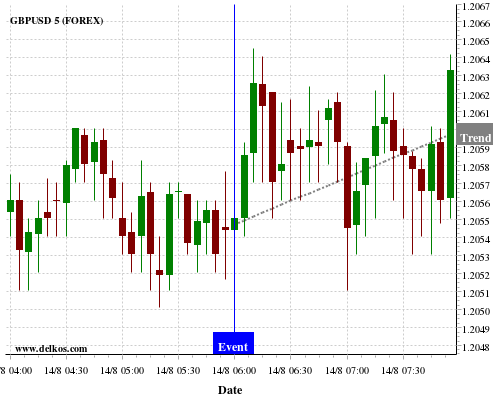 这个概率是根据最近12次公布DE GDP Growth Rate QoQ Flash数据得出的, 12次中有5次真实数据等于专家预期, 这其中有4次导致GBPUSD上涨。