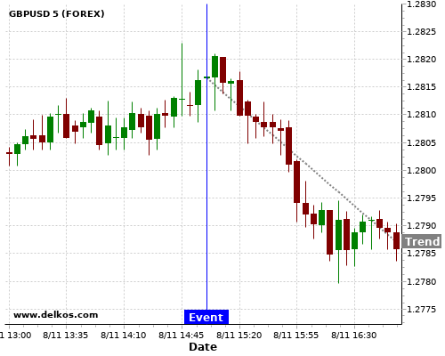 这个概率是根据最近12次公布US Michigan Consumer Sentiment Prel数据得出的, 12次中有5次真实数据小于专家预期, 这其中有4次导致GBPUSD下跌。