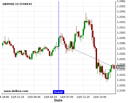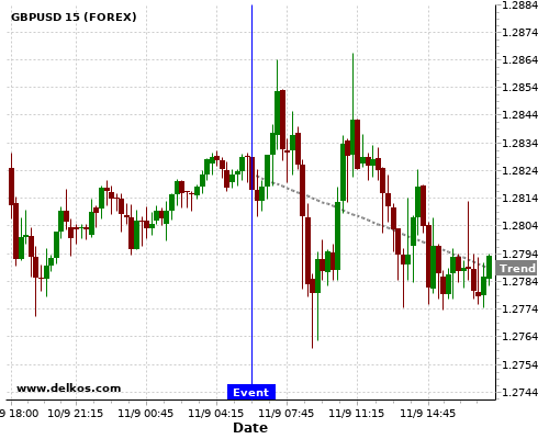 这个概率是根据最近12次公布GB Balance of Trade数据得出的, 12次中有5次真实数据小于专家预期, 这其中有4次导致GBPUSD下跌。