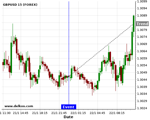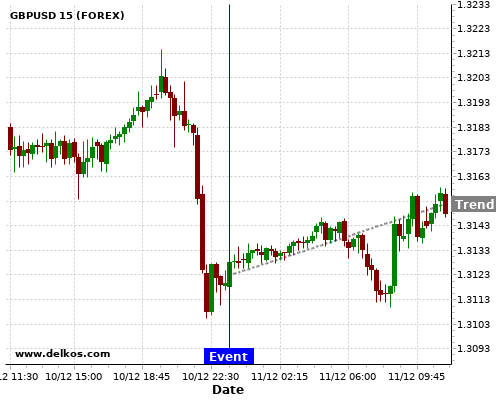 这个概率是根据最近12次公布AU Westpac Consumer Confidence Index数据得出的, 12次中有6次真实数据小于专家预期, 这其中有5次导致GBPUSD上涨。