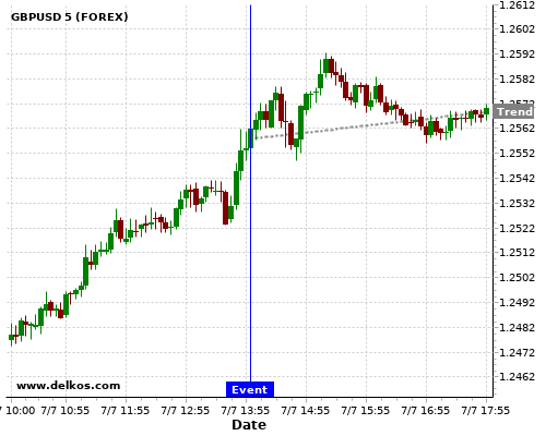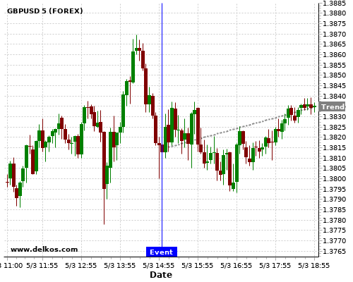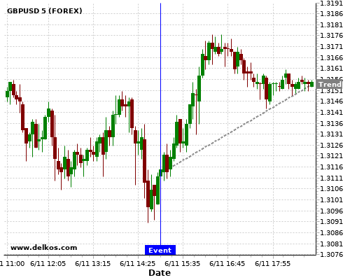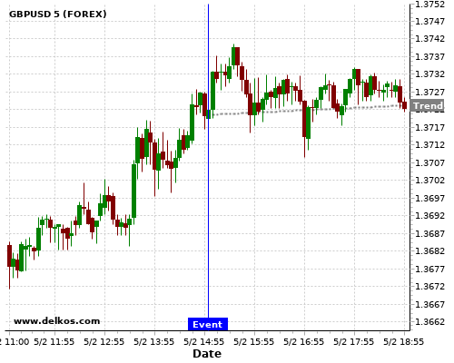 这个概率是根据最近12次公布CA Ivey PMI s.a数据得出的, 12次中有6次真实数据大于专家预期, 这其中有5次导致GBPUSD上涨。