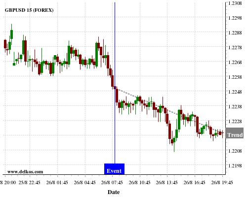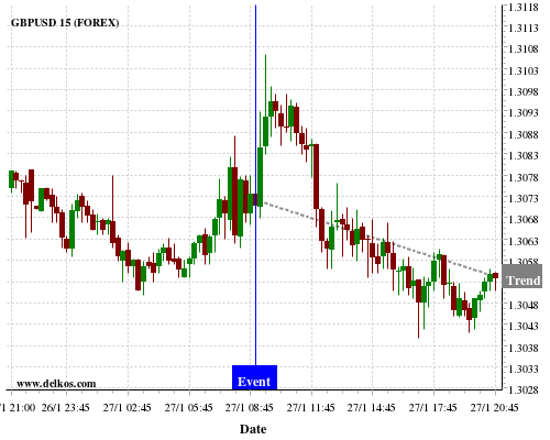 这个概率是根据最近12次公布DE Ifo Business Climate数据得出的, 12次中有6次真实数据小于专家预期, 这其中有5次导致GBPUSD下跌。