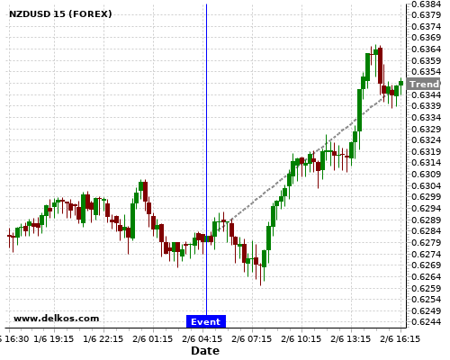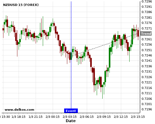这个概率是根据最近12次公布AU RBA Interest Rate Decision数据得出的, 12次中有11次真实数据等于专家预期, 这其中有8次导致NZDUSD上涨。