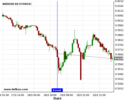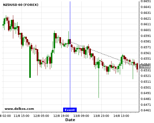 这个概率是根据最近12次公布AU Employment Change数据得出的, 12次中有8次真实数据大于专家预期, 这其中有5次导致NZDUSD下跌。