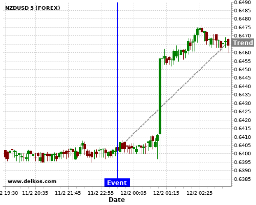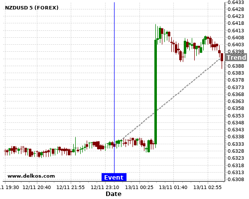 这个概率是根据最近12次公布AU Westpac Consumer Confidence Index数据得出的, 12次中有5次真实数据大于专家预期, 这其中有4次导致NZDUSD上涨。