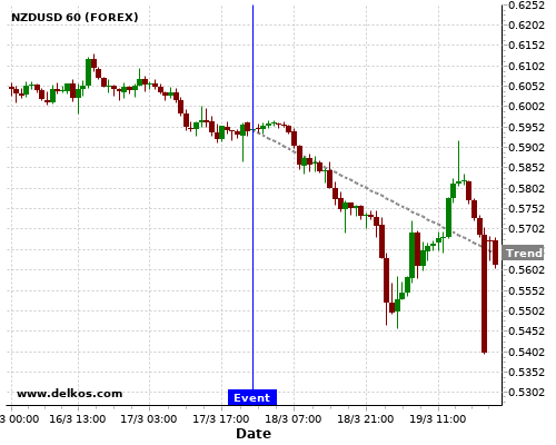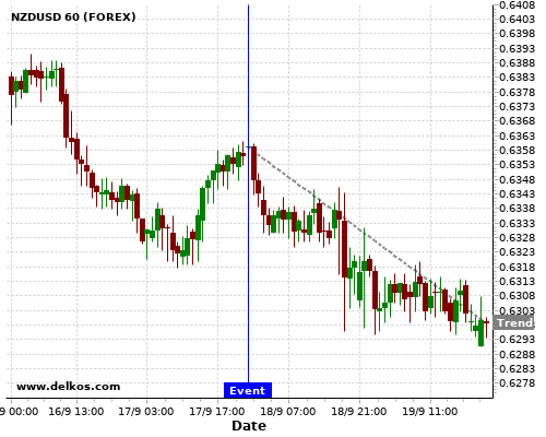 这个概率是根据最近12次公布JP Balance of Trade数据得出的, 12次中有6次真实数据大于专家预期, 这其中有5次导致NZDUSD下跌。