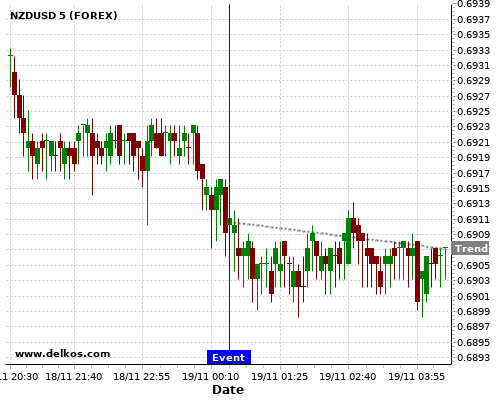 这个概率是根据最近12次公布AU Employment Change数据得出的, 12次中有8次真实数据大于专家预期, 这其中有7次导致NZDUSD下跌。
