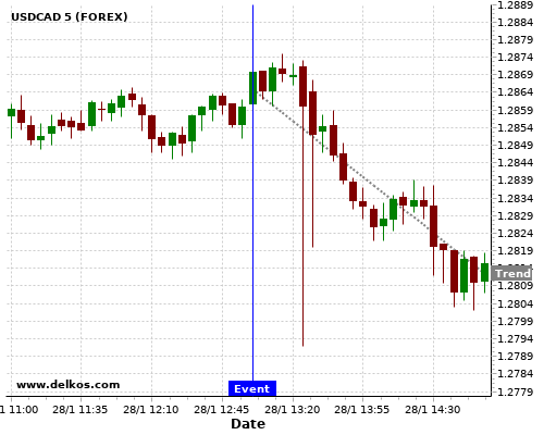 这个概率是根据最近12次公布DE Inflation Rate YoY Prel数据得出的, 12次中有4次真实数据大于专家预期, 这其中有3次导致USDCAD下跌。