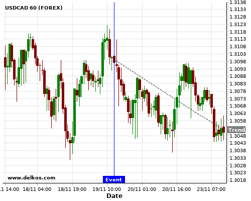 这个概率是根据最近12次公布US Continuing Jobless Claims 数据得出的, 12次中有8次真实数据小于专家预期, 这其中有5次导致USDCAD下跌。