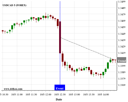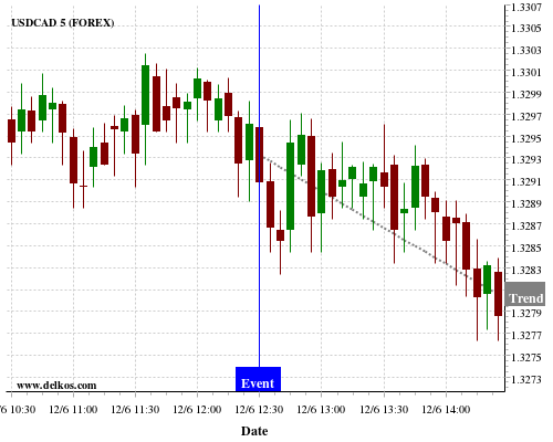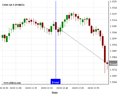 这个概率是根据最近12次公布US Inflation Rate YoY数据得出的, 12次中有5次真实数据小于专家预期, 这其中有4次导致USDCAD下跌。