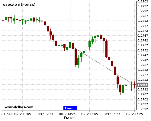 这个概率是根据最近12次公布US Inflation Rate YoY数据得出的, 12次中有5次真实数据大于专家预期, 这其中有4次导致USDCAD下跌。