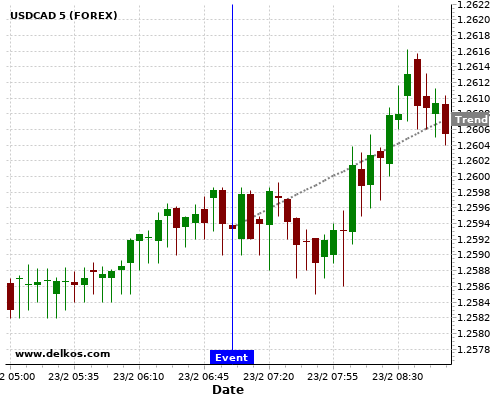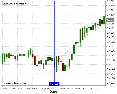 这个概率是根据最近12次公布GB Claimant Count Change数据得出的, 12次中有7次真实数据小于专家预期, 这其中有6次导致USDCAD上涨。