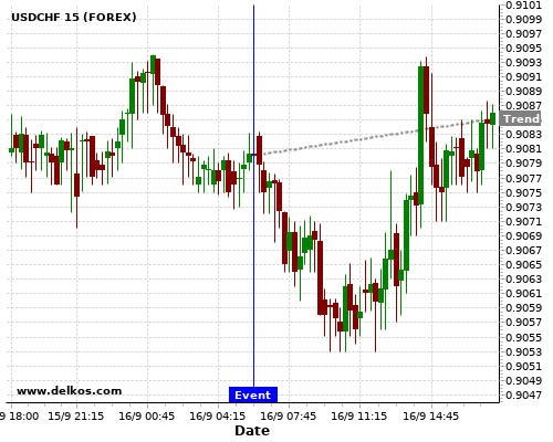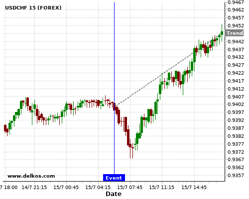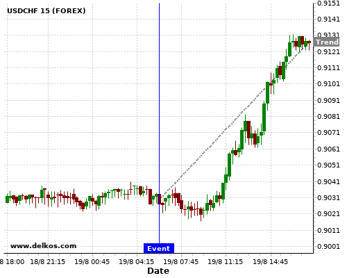 这个概率是根据最近12次公布GB Inflation Rate YoY数据得出的, 12次中有6次真实数据大于专家预期, 这其中有5次导致USDCHF上涨。