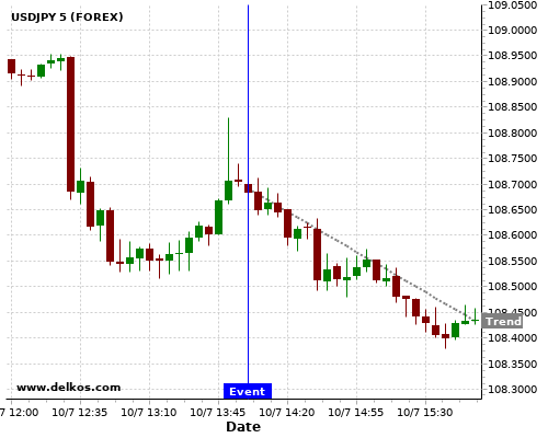 这个概率是根据最近12次公布CA BoC Interest Rate Decision 数据得出的, 12次中有11次真实数据等于专家预期, 这其中有5次导致USDJPY下跌。