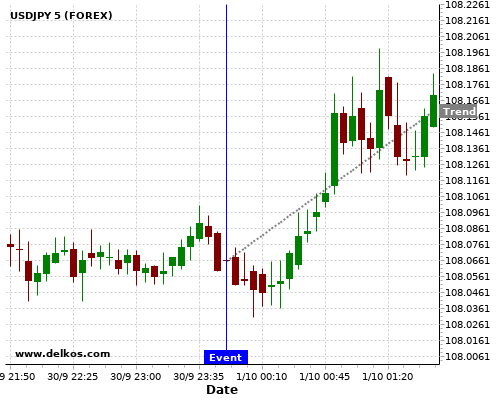 这个概率是根据最近12次公布JP Tankan Large Manufacturers Index数据得出的, 12次中有4次真实数据大于专家预期, 这其中有3次导致USDJPY上涨。