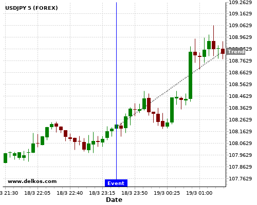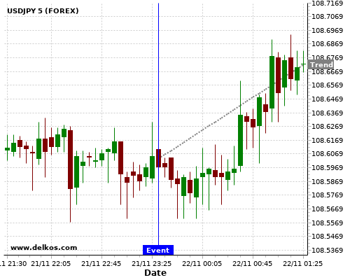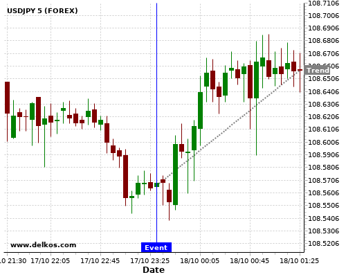 这个概率是根据最近12次公布JP Inflation Rate YoY数据得出的, 12次中有4次真实数据小于专家预期, 这其中有3次导致USDJPY上涨。