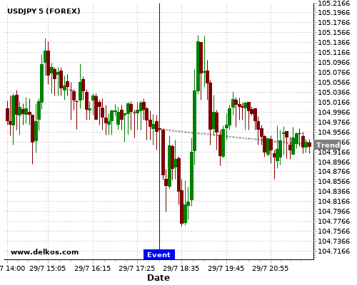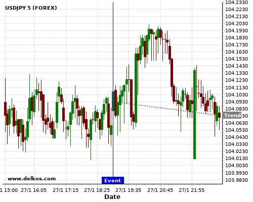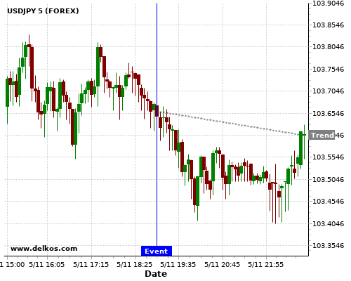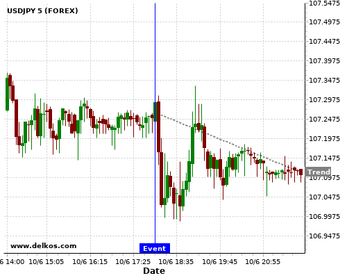 这个概率是根据最近12次公布US Fed Interest Rate Decision数据得出的, 12次中有12次真实数据等于专家预期, 这其中有9次导致USDJPY下跌。