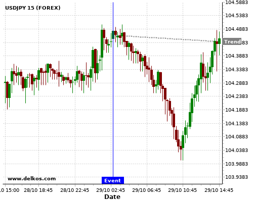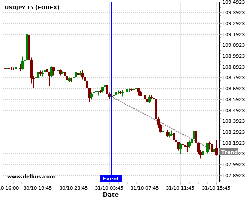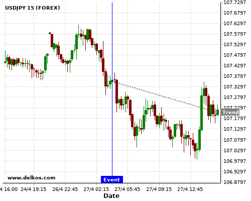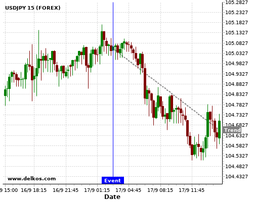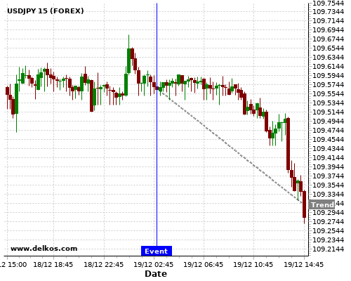 这个概率是根据最近12次公布JP BoJ Interest Rate Decision数据得出的, 12次中有12次真实数据等于专家预期, 这其中有9次导致USDJPY下跌。