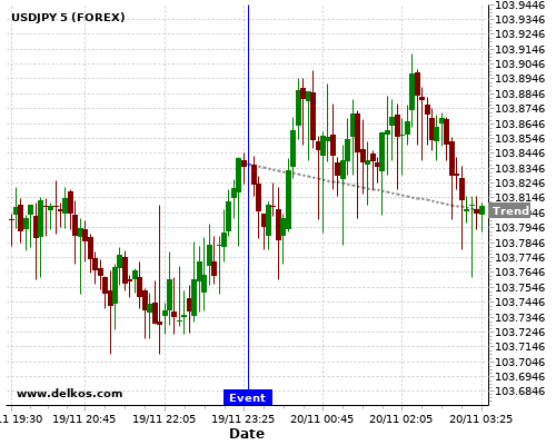 这个概率是根据最近12次公布JP Inflation Rate YoY数据得出的, 12次中有4次真实数据小于专家预期, 这其中有3次导致USDJPY下跌。