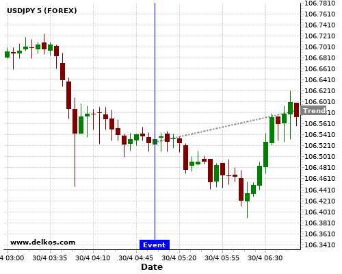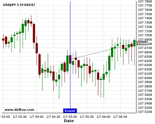 这个概率是根据最近12次公布JP Consumer Confidence数据得出的, 12次中有6次真实数据小于专家预期, 这其中有5次导致USDJPY上涨。