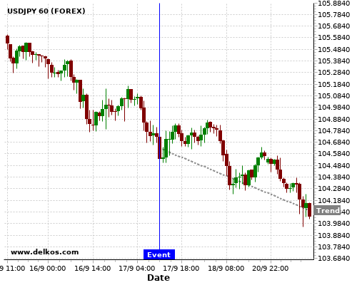 这个概率是根据最近12次公布GB BoE Interest Rate Decision数据得出的, 12次中有12次真实数据等于专家预期, 这其中有10次导致USDJPY下跌。