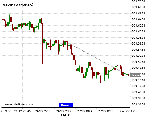 这个概率是根据最近12次公布JP Unemployment Rate数据得出的, 12次中有6次真实数据小于专家预期, 这其中有5次导致USDJPY下跌。