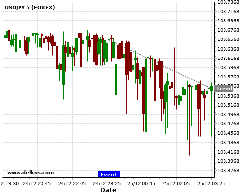 这个概率是根据最近12次公布JP Unemployment Rate数据得出的, 12次中有6次真实数据小于专家预期, 这其中有5次导致USDJPY下跌。