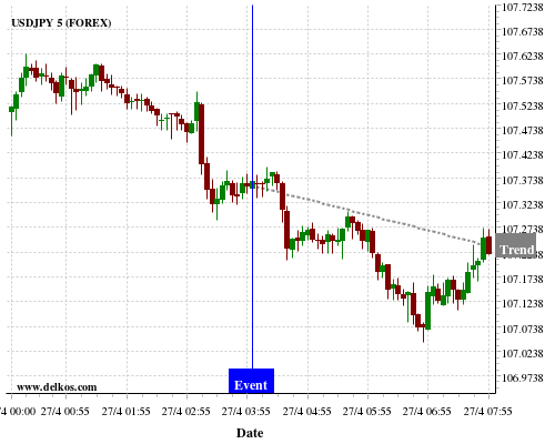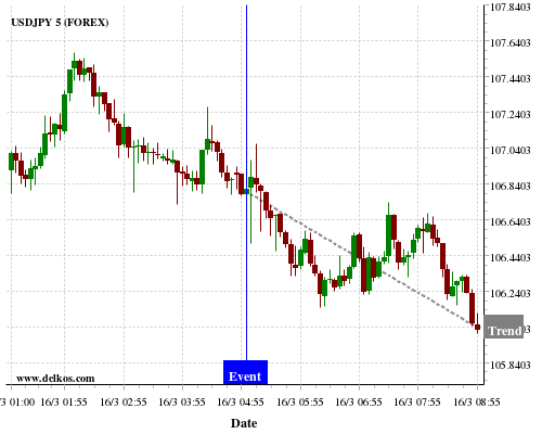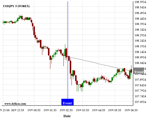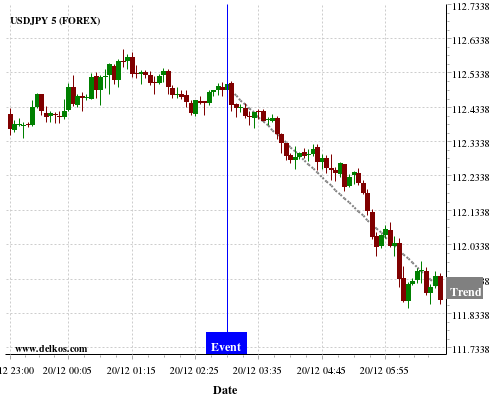 这个概率是根据最近12次公布JP BoJ Interest Rate Decision数据得出的, 12次中有12次真实数据等于专家预期, 这其中有10次导致USDJPY下跌。