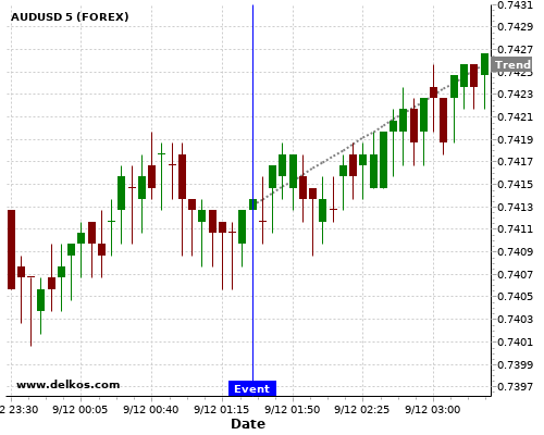 这个可能性是根据最近12次公布AU Westpac Consumer Confidence Index数据得出的,12次中有6次真实数据大于专家预期,这其中有5次导致AUDUSD上涨。