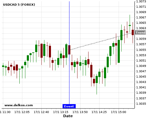 如果该数据大于专家预期,那么USDCAD在消息公布之后的四小时内,将有85.71%的可能性会上涨。