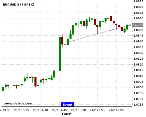 这个可能性是根据最近12次公布US Existing Home Sales数据得出的,12次中有7次真实数据大于专家预期,这其中有5次导致EURUSD上涨。