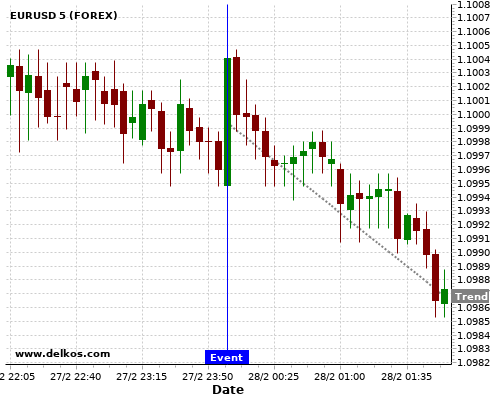 如果该数据大于专家预期,那么EURUSD在消息公布之后的四小时内,将有87.5%的可能性会下跌。
