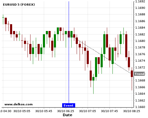 如果该数据大于专家预期,那么EURUSD在消息公布之后的四小时内,将有80%的可能性会下跌。