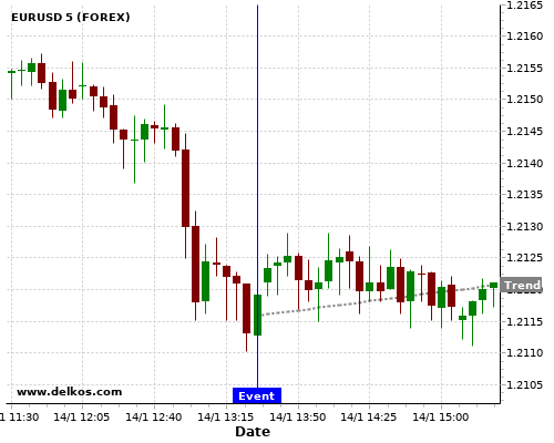 如果该数据小于专家预期,那么EURUSD在消息公布之后的四小时内,将有70%的可能性会上涨。