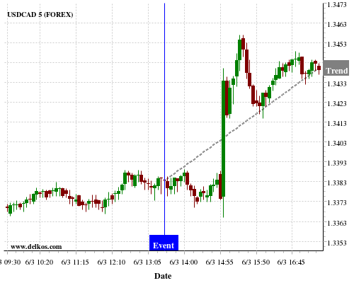 如果该数据小于专家预期,那么USDCAD在消息公布之后的四小时内,将有80%的可能性会上涨。